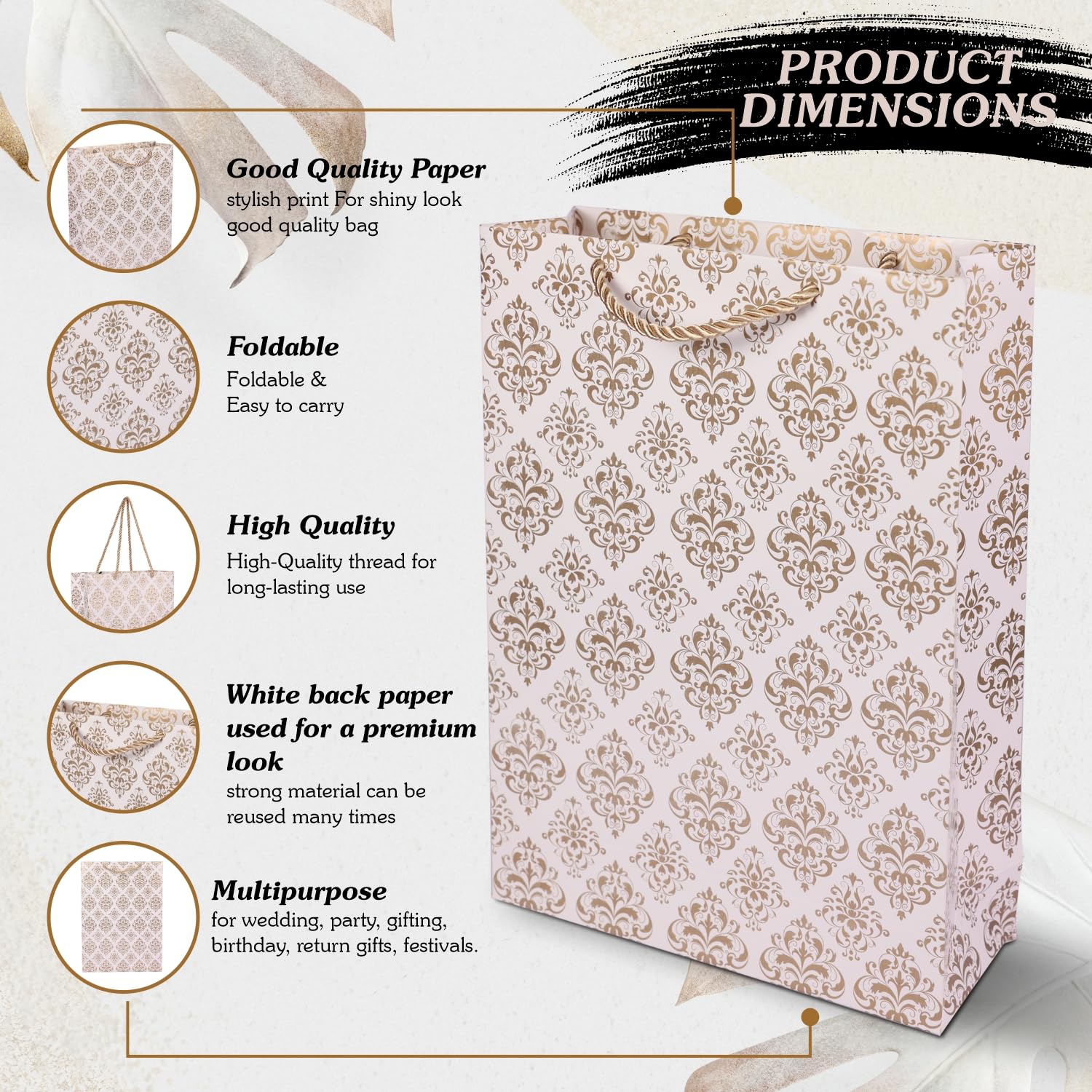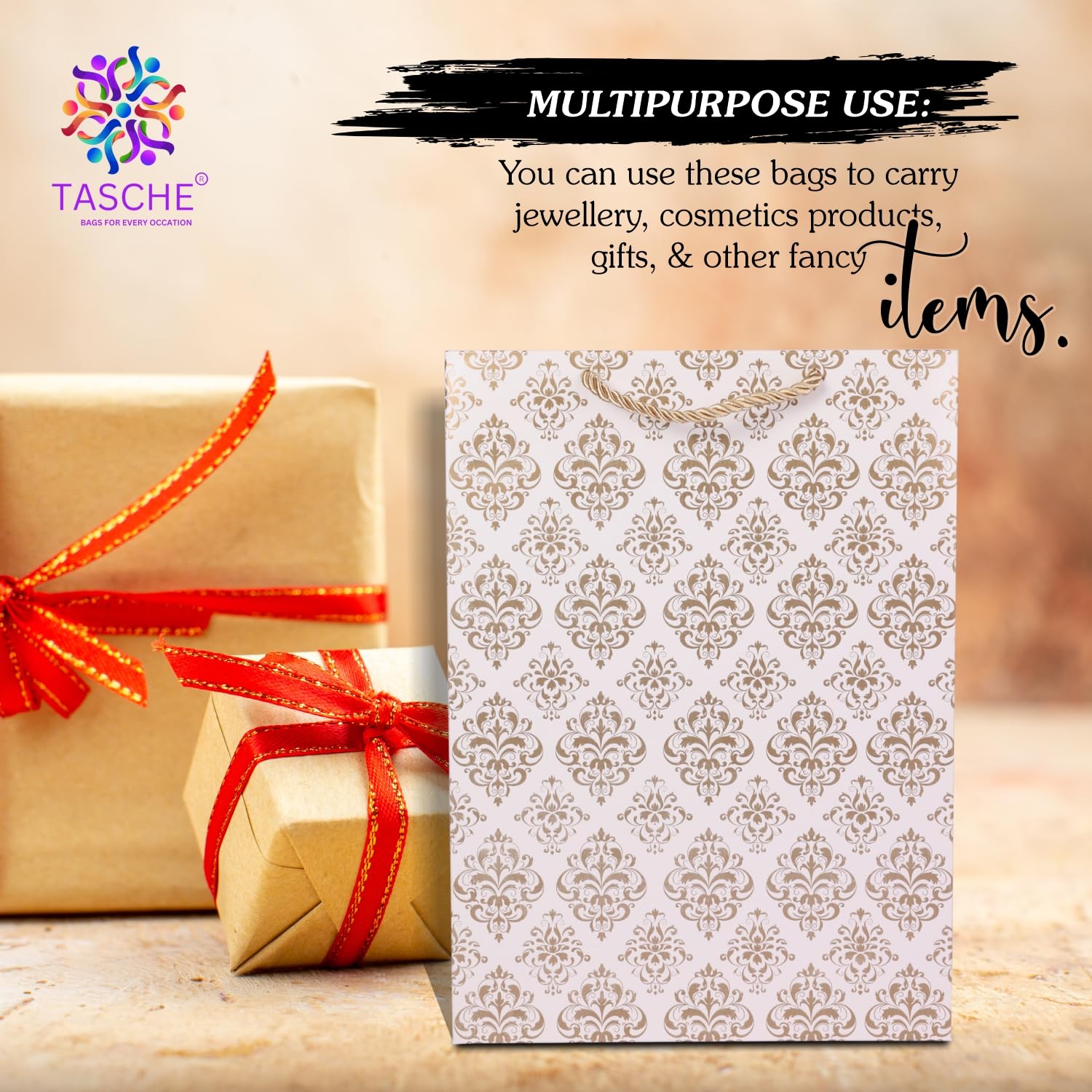 🛍️ PAPER BAGS FOR GIFTS – These gifting bags can be used as multipurpose gift bags instead of plastic bags for gifts. These paper gift bags are ideal for small gifts and medium gifts. You can use these bags to carry jewellery, cosmetics, beer bottles, normal water and other fancy items for gifting. This can be used as a goody bags for return gifts.