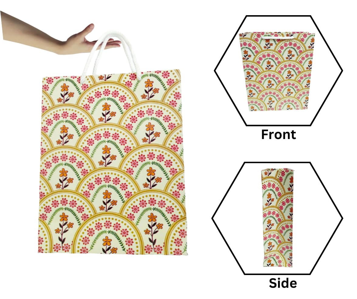 Perfect Size for Gifting – Each paper gift bag measures 25cm x 20cm x 10cm (10in x 8in x 4in), ideal for small to medium return gifts, toys, snacks, or goodies.