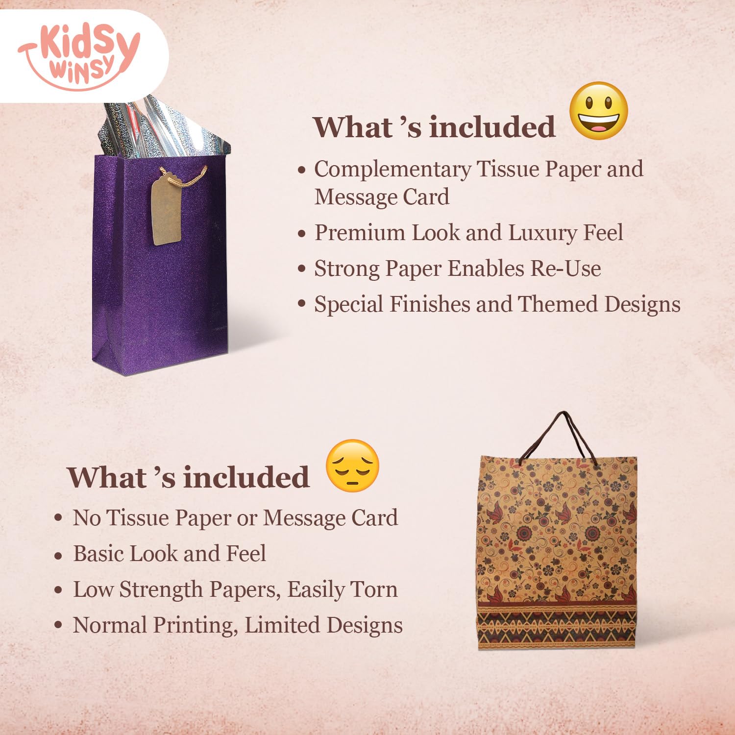 VALUE FOR MONEY: Each paper bag comes with a delicate tissue gift wrap paper and a thank you card to add a personalised touch. Perfect for gift cover bags, tambulam bags for return gifts, and bridesmaid gift bags.