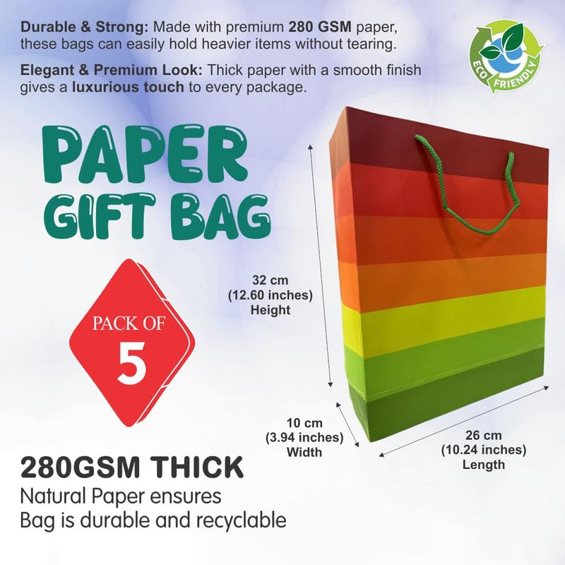 SUITABLE SIZE – Each artistic gift bag comes with a matching tissue to wrap the gift and a gift card to write a personalized note. It can be used as gift bags Medium for return gifts. Please check size before buying: front width 26.cms (10.24 inches) x side width 10.cms (3.94 inches) x height 32cms (12.60 inches).
