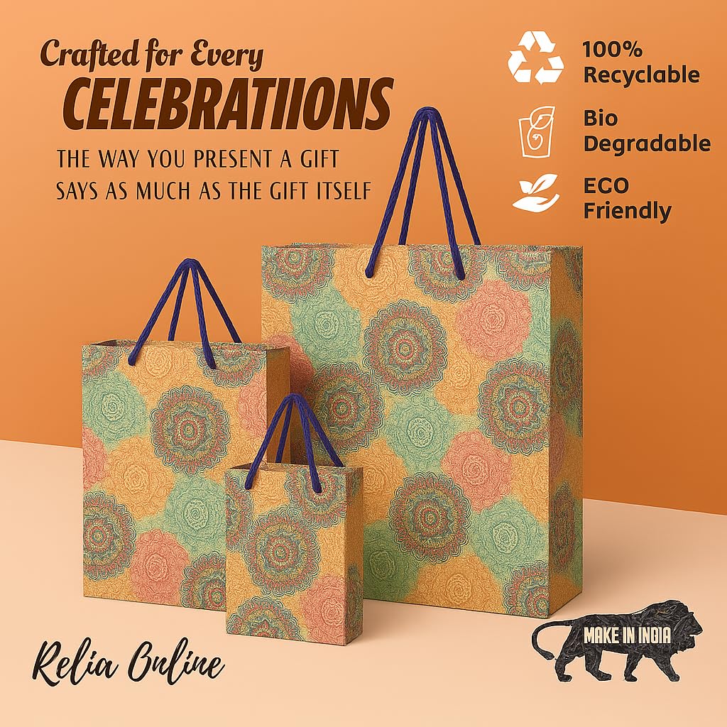 Eco-Friendly: Sustainable, Reusable, Recyclable, Biodegradable kraft gift bags – an Eco-conscious alternative to plastic carry bags.