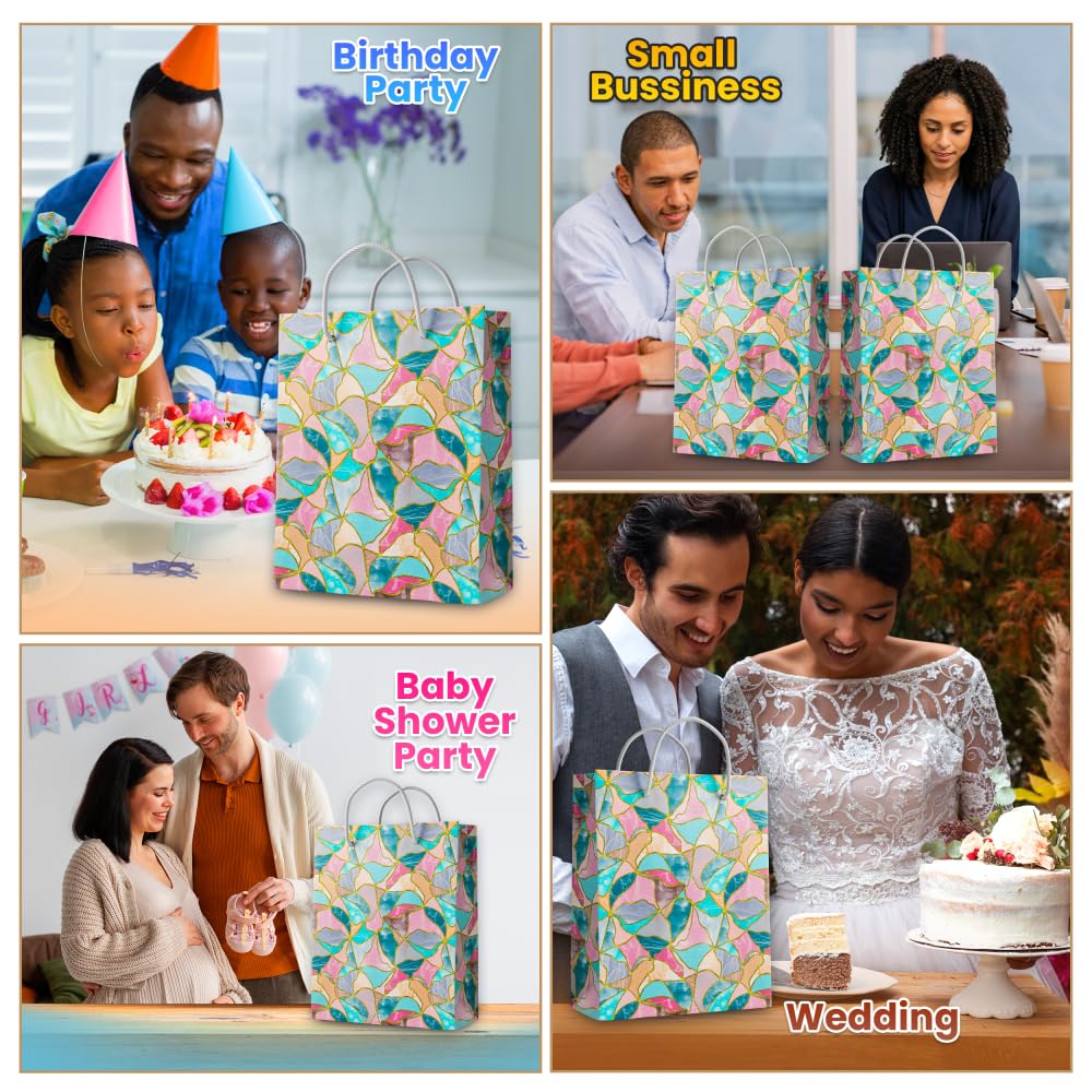 SIZE: Includes 12 gift bags measuring 8.5 inches ( height) x 7 inches (width) x 3.5 inches (breadth). They can hold upto a weight of 1 kg