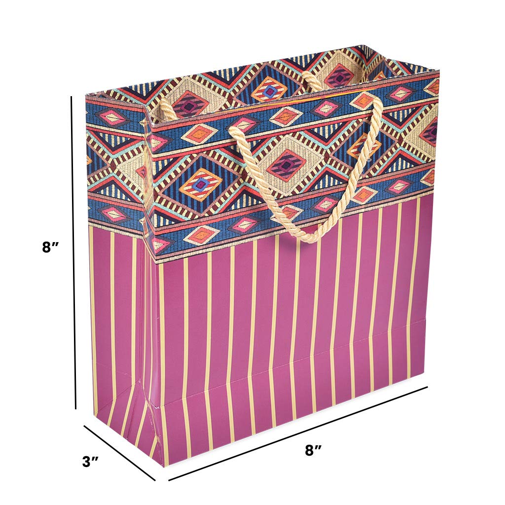 Sapco Gift Paper Bag “Indian Brocade” (8X8X3-Inch- Small) Perfect For Diwali, Indian Gifiting, 10 count,Multicolor